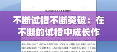 不断试错,不断突破,是我们在追求进步的道路上必须遵循的原则。试错并非目的,而是为了找到实现目标的最佳途径。在试错的过程中,我们可能会遇到挫折,但正是这些挫折,让我们更加坚韧不拔。让我们怀揣着试错的勇气和突破的决心,不断探索未知,创造无限可能。
