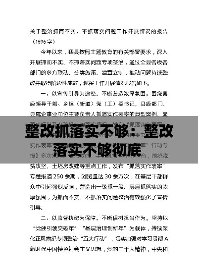 在现代社会,整改抓落实已经成为各项工作的重要组成部分。无论是企业、政府机构还是社会组织,都需要通过整改来提升工作效率、优化工作流程,进而实现更好的发展。然而,在实际工作中,整改抓落实往往面临着诸多挑战,导致整改效果不尽如人意。本文将围绕“整改抓落实不够”这一主题,分析原因并提出改进措施。