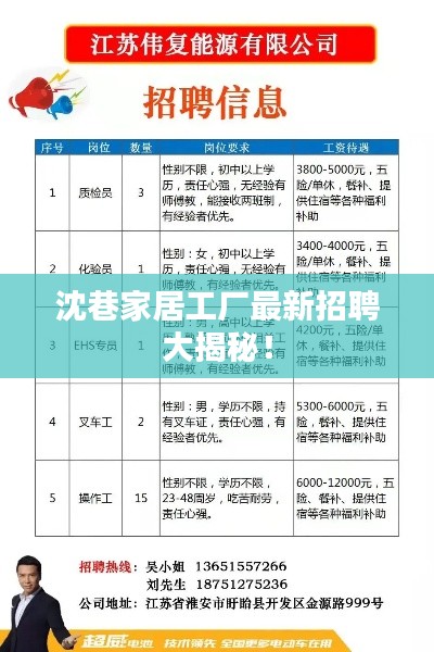 沈巷家居工厂正处在一个快速发展的阶段,我们需要更多的优秀人才来共同实现我们的愿景,无论您是寻求职业发展,还是希望找到一个能够施展才华的平台,沈巷家居工厂都是您的最佳选择,我们期待您的加入,让我们共同创造更美好的明天!