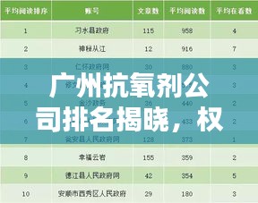 随着化学工业的发展,抗氧剂在各行各业的应用越来越广泛,广州,作为中国南方的重要城市,其抗氧剂行业也日渐繁荣,本文将为您介绍广州地区的抗氧剂公司排名,以便您更好地了解这一领域的发展状况。