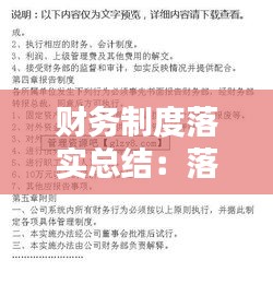 随着我国经济的快速发展,企业对于财务管理的要求越来越高。财务制度作为企业内部控制的重要组成部分,对于确保企业财务稳健、合规经营具有重要意义。本文将对过去一年内企业财务制度的落实情况进行总结,分析存在的问题,并提出改进措施。