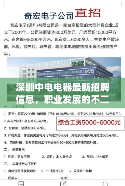 随着科技的飞速发展,电器行业日新月异,市场需求不断增长,深圳中电电器作为业内的佼佼者,一直在寻求有志之士的加入,本文将为您详细介绍深圳中电电器招聘信息的最新情况,带您了解这家企业的招聘需求、工作环境及职业发展前景。
