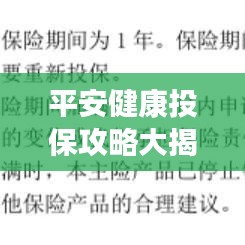 随着人们生活水平的提高,健康意识日益增强,越来越多的人开始关注健康保险,平安健康保险作为市场上的知名品牌,为广大消费者提供了丰富的产品选择和保障,本文将为您详细介绍平安健康投保的最新攻略,助您明智选择,安心保障。