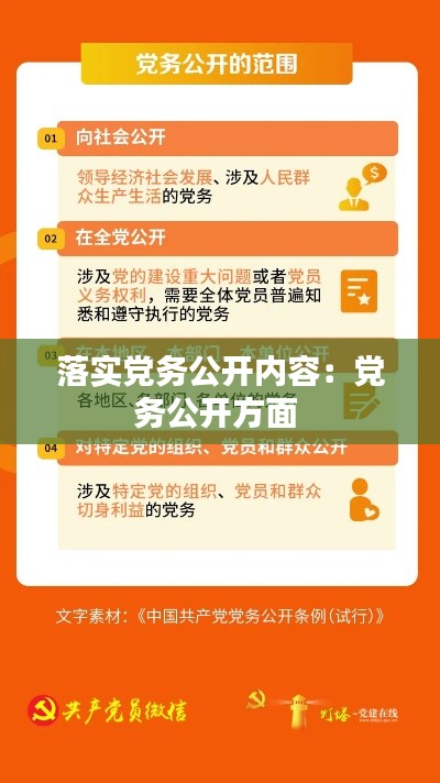 • 媒体公开:通过电视、广播、报纸、网络等媒体公开党务信息。