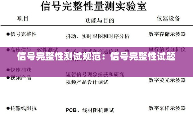 随着电子产品的日益复杂化,信号完整性(Signal Integrity,SI)成为了一个至关重要的考虑因素。信号完整性测试规范是为了确保电子系统中的信号在传输过程中保持其原有的质量,避免由于信号失真、反射、串扰等问题导致的系统性能下降。本文将详细介绍信号完整性测试规范的相关内容,包括测试目的、测试方法、测试工具和测试流程等。