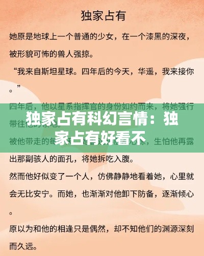 《独家占有科幻言情》不仅仅是一部科幻爱情小说,它还引发了我们对爱情、科技和人类未来的思考。在这个科技飞速发展的时代,我们是否应该追求物质与精神的平衡?在探索宇宙的过程中,我们是否应该珍惜眼前的爱情和亲情?这些问题值得我们深思。