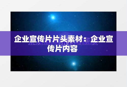 根据企业宣传片的特点和需求,常见的片头素材类型包括以下几种: