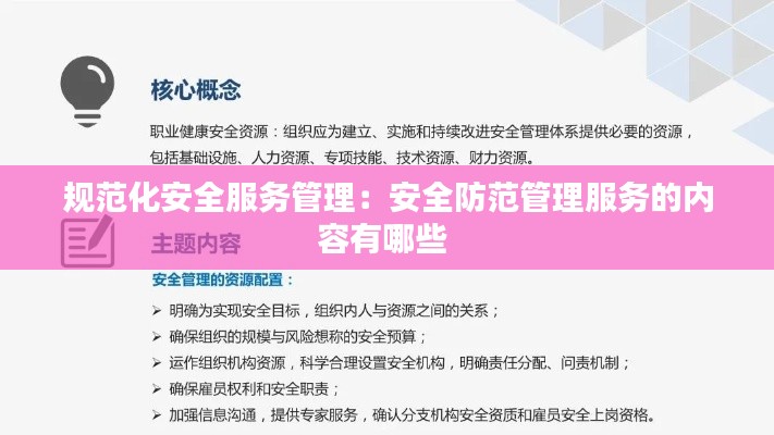 规范化安全服务管理是指在企业内部建立健全安全管理制度,通过制定和执行一系列安全标准和操作流程,确保服务过程的安全、可靠和高效。具体包括以下几个方面: