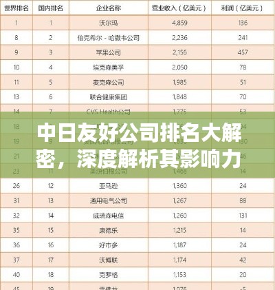 随着中日两国经济交流的日益频繁,许多中日友好公司在两国间扮演着重要的角色,这些公司通过合作与创新,为中日两国的经济发展做出了重要贡献,本文将探讨中日友好公司的排名及其影响力。