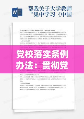 随着党的建设不断深化,党校作为党员干部教育培训的主阵地,其工作的重要性日益凸显。为加强和规范党校工作,党中央制定了一系列重要条例和办法。本文将围绕《党校工作条例》和《党校落实条例办法》展开,探讨如何更好地落实这些条例,提升党校教育培训质量。