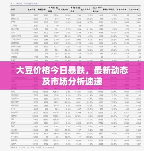 全球大豆市场受到广泛关注,尤其是关于大豆今日价格暴跌的最新消息引发了行业内外的热议,本文将从市场概况、影响因素、未来展望等方面,对大豆价格暴跌现象进行深入剖析。