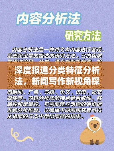 随着新闻传播行业的不断发展,新闻报道的形式和内容也在不断创新,深度报道作为新闻传媒的一种重要形式,旨在揭示事件的深层原因,挖掘事物的内在规律,为广大读者提供全面、深入的新闻信息,而深度报道分类特征分析法作为一种有效的新闻报道方法,对于提升新闻报道的质量和深度具有重要意义,本文将对深度报道分类特征分析法进行详细的阐述。