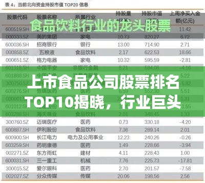 随着食品行业的快速发展,越来越多的食品企业开始走向资本市场,成为公众关注的焦点,本文将介绍上市食品股票排名前十名的企业,这些企业在食品行业中处于领先地位,拥有强大的品牌影响力和市场份额。