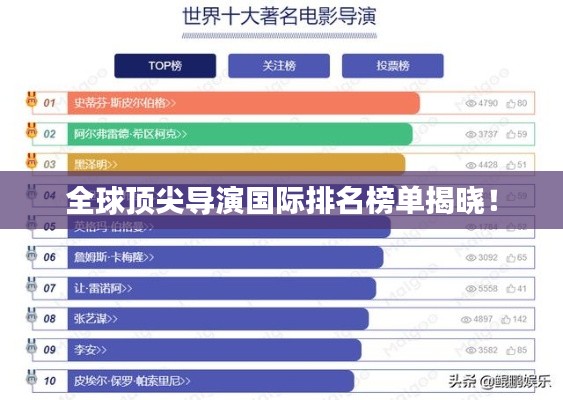 电影艺术,作为一种跨越国界的艺术形式,早已深入人心,深受全球观众喜爱,而在这其中,导演是影片的灵魂,他们的才华、创意和技艺决定了电影的质量,探讨世界导演的国际排名,无疑是对电影艺术的一种尊重和致敬。