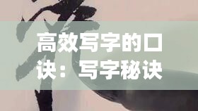写字,看似简单的日常行为,实则蕴含着不少技巧。高效写字不仅能提升书写速度,还能提高文字质量,让人在阅读时感受到舒适。今天,就让我们一起来探讨一下高效写字的口诀,帮助大家在写字的道路上更进一步。