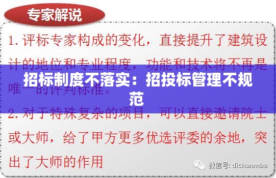招标制度作为市场经济中的一种重要机制,旨在通过公开、公平、公正的方式选择供应商或承包商,从而保障公共资源分配的透明度和效率。然而,在实际操作中,招标制度的不落实现象时有发生,这不仅损害了公平竞争的环境,也影响了公共资源的合理配置。本文将探讨招标制度不落实的原因、影响及其应对措施。
