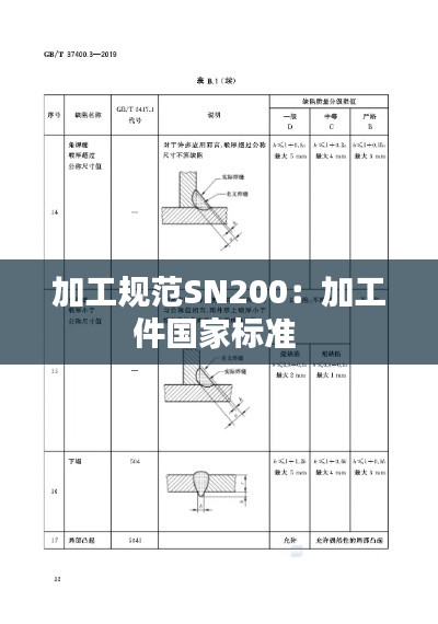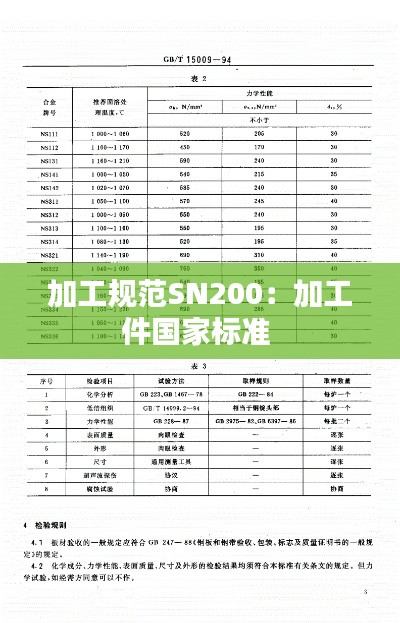 加工规范SN200是一种针对金属材料加工过程中的质量控制标准。它由我国国家标准委员会制定,旨在确保金属材料在加工过程中的质量稳定性和可靠性。SN200规范涵盖了从原材料采购、加工工艺、设备要求到成品检验等一系列环节,旨在提高金属材料的加工质量,满足不同行业和领域的应用需求。