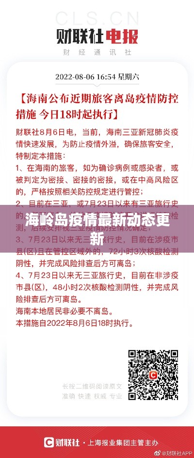 为了进一步加强疫情防控工作,海岭岛已经采取了一系列新的防控措施,其中包括加强社区管理,加大宣传力度,加强人员排查和隔离工作等,当地还加强了对重点区域的管控,对高风险地区的人员进行了严格的隔离和检测,这些措施的实施,为疫情防控工作提供了有力保障。