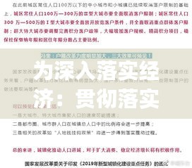 要深入落实经济政策,首先需要制定科学合理的政策。政策制定应充分考虑国内外经济形势,结合国家发展战略,确保政策的针对性和可操作性。同时,政策执行也是关键环节。政府部门应加强对政策执行的监督,确保政策落地生根,避免出现“上有政策、下有对策”的现象。