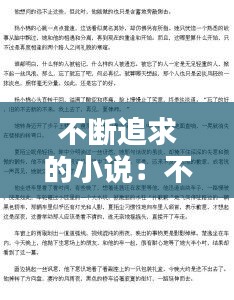 小说,作为一种文学形式,拥有着独特的魅力和力量。它能够引领读者进入一个全新的世界,与各种各样的人物相遇,体验不同的人生。然而,小说的魅力并不仅仅在于其故事情节的曲折离奇,更在于作者和读者不断追求的过程。这种追求,使得小说成为了一种永恒的艺术形式。