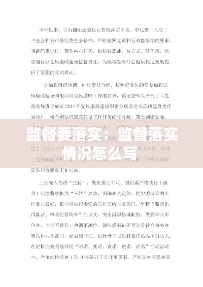 监督,作为现代管理的重要组成部分,是确保组织、企业和项目顺利进行的关键环节。它不仅有助于发现和纠正错误,还能促进效率提升和风险管理。然而,监督的有效性往往取决于其实际落实的程度。本文将探讨监督要落实的重要性,并分析如何确保监督措施得以真正执行。