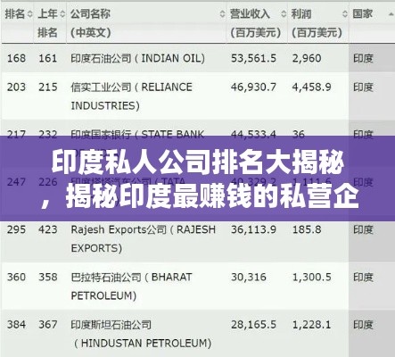 印度私人公司排名大揭秘,揭秘印度最赚钱的私营企业榜单!