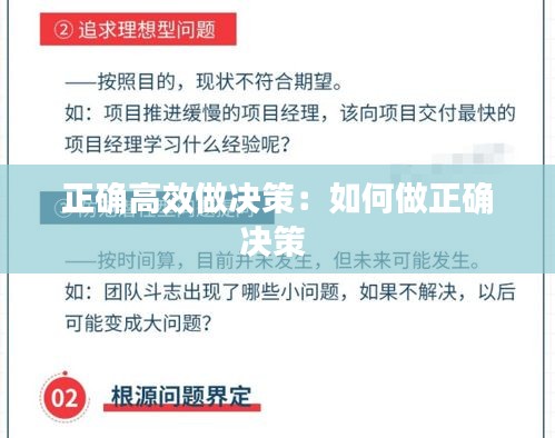 正确高效地做出决策是一个复杂的过程,需要我们在信息收集、目标明确、逻辑分析和心理素质等多方面进行努力。通过不断提升自己的决策能力,我们能够更好地应对挑战,实现个人和团队的目标。