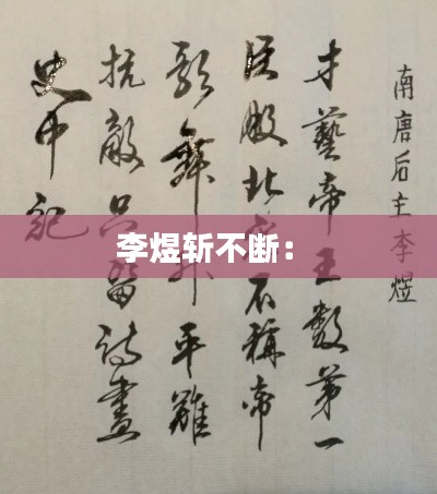 李煜的一生,充满了悲剧色彩,但他留下的诗词,却成为了永恒的艺术瑰宝。他的“斩不断”不仅是对个人命运的无奈,更是对那个时代、那个社会的深刻反思。李煜的诗词,让我们感受到了人生的无常和命运的无情,同时也让我们体会到了文学的魅力和力量。在历史的长河中,李煜的名字将永远被铭记。