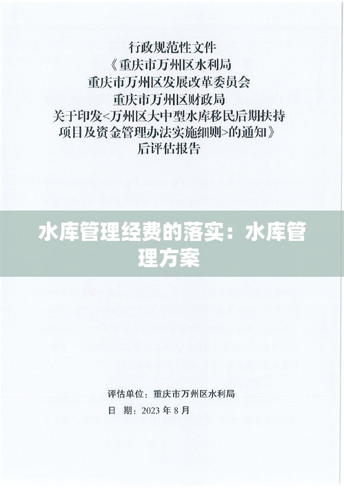 水库作为国家重要的水资源基础设施,不仅在防洪、发电、灌溉等方面发挥着重要作用,同时也是保障国家生态安全和区域经济发展的重要支撑。然而,水库的管理和维护需要大量的经费投入。因此,水库管理经费的落实问题显得尤为重要。