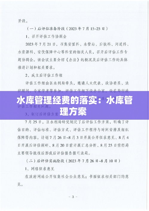 完善管理机制:建立健全水库管理机制,提高经费使用效率,确保每一分钱都能用在刀刃上。