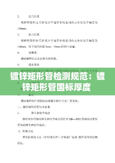 镀锌矩形管作为一种常见的建筑和工业材料,因其良好的耐腐蚀性能和结构稳定性而被广泛应用于各种领域。为了保证镀锌矩形管的质量和性能,对其进行严格的检测是必不可少的。本文将详细介绍镀锌矩形管的检测规范,包括检测目的、检测项目、检测方法和检测标准等方面。
