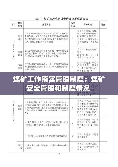 煤矿工作落实管理制度:煤矿安全管理和制度情况