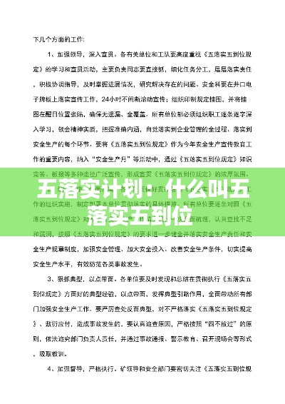 五落实计划是一种旨在确保工作、项目或任务有效执行的管理工具。它通过五个关键步骤来确保所有关键方面都得到妥善处理,从而提高工作效率和成果质量。以下是五落实计划的五个关键步骤及其重要性。