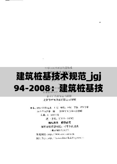 建筑桩基技术规范JGJ94-2008是中国建筑行业的一项重要技术规范,旨在规范建筑桩基的设计、施工、检测和维护等工作。该规范于2008年发布,适用于各类建筑桩基工程,包括住宅、商业、工业、交通等领域的桩基设计施工。