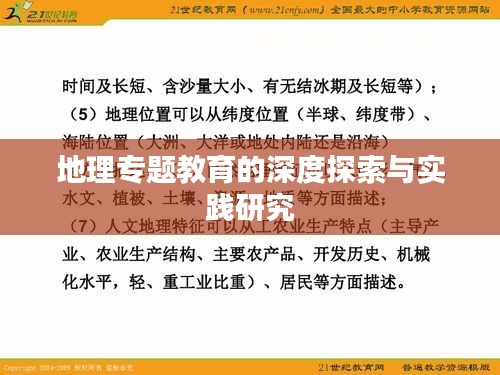 地理专题教育,是地理学领域的重要组成部分,也是教育教学的重要内容,在当前的教育体系中,地理专题教育的重要性日益凸显,本文旨在探讨地理专题教育的内涵、目标、方法,并结合实践,阐述其在现代教育教学中的实施策略与效果。