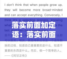 定语的基本作用是提供关于名词的详细信息,包括性质、数量、时间、地点等。例如,“红色的苹果”中的“红色”就是一个定语,它告诉我们苹果的颜色。在“落实前面加定语”的表达中,定语的使用可以使得名词更加具体,从而提高表达的效果。