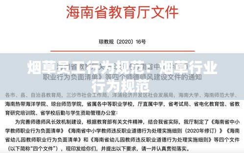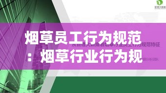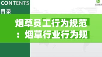 烟草行业作为国家重要的经济支柱之一,肩负着保障国家财政收入和促进社会发展的重任。为了确保烟草行业的健康发展,维护企业形象,提升员工素质,特制定本《烟草员工行为规范》。本规范旨在规范烟草员工的行为,提高职业道德,增强团队凝聚力,确保各项工作的高效运行。