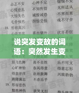 生活中,我们时常会遇到一些突如其来的变故,这些变故可能改变我们的计划、影响我们的情绪,甚至彻底颠覆我们的生活。为了描述这些突然发生的事件,人们创造了许多富有表现力的词语。本文将探讨一些常用的描述突发变故的词语,并分析它们在语境中的运用。