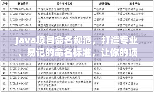 在软件开发中,项目名称的规范是非常重要的,一个好的项目名称可以帮助团队成员更好地理解项目的目标,也可以使项目在管理和维护过程中更加清晰,对于Java项目来说,遵循一定的命名规范更是关键,下面我们就来探讨一下Java项目名称规范的相关内容。