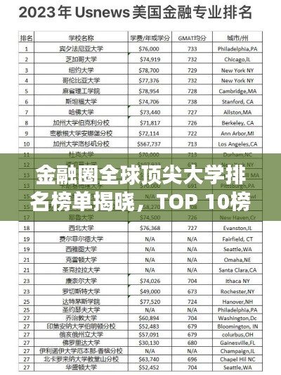 金融,作为现代经济的血脉,其重要性日益凸显,全球各地的学子都对金融专业怀有浓厚的兴趣,而金融圈世界大学排名前十更是成为众多学子梦寐以求的学习殿堂,本文将为您揭晓金融圈世界大学排名前十的名单,并带您领略这些顶尖学府的风采。