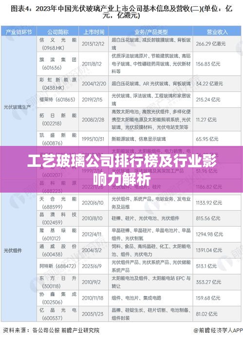 随着现代建筑和设计的飞速发展,工艺玻璃行业也迎来了繁荣的时代,各大工艺玻璃公司凭借创新的技术、优质的产品以及良好的服务,赢得了市场的广泛认可,以下是当前工艺玻璃公司的排名,以及它们在行业中的影响力。