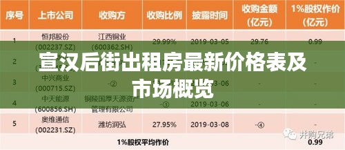随着城市化进程的加快,租房需求日益旺盛,宣汉后街作为城市的重要组成部分,其出租房价格一直备受关注,本文将为您呈现宣汉后街出租房价格表的最新信息,以便您了解当地的租赁市场状况。