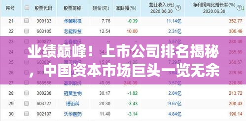 随着中国经济的蓬勃发展,资本市场日益壮大,上市公司在其中扮演着重要角色,这些公司的业绩不仅反映了中国经济的活力,也引领着行业的发展方向,本文将为您揭示业绩最大的上市公司排名,带您了解这些资本市场的佼佼者。