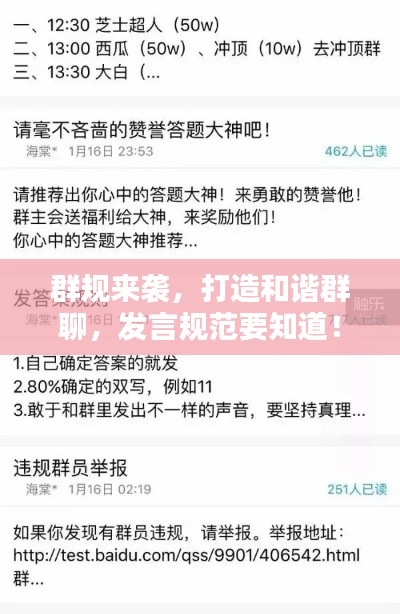 本文详细阐述了群内发言规范的重要性以及具体的规范要求,旨在帮助群成员更好地进行发言和交流,希望每位群成员都能遵守发言规范,共同维护良好的群内氛围,提高沟通效率,确保信息的有序传播,对于违规行为,群管理将采取相应的处理措施,以确保群内秩序和成员的权益,让我们共同努力,打造一个友好、和谐、有价值的交流群组。
