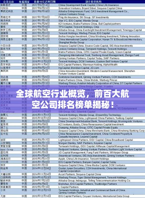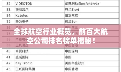 随着全球经济的飞速发展,航空行业也日新月异,各大航空公司不断推陈出新,提升服务质量与运营效率,本文将为您详细介绍全球一百大航空公司的排名及其概况。