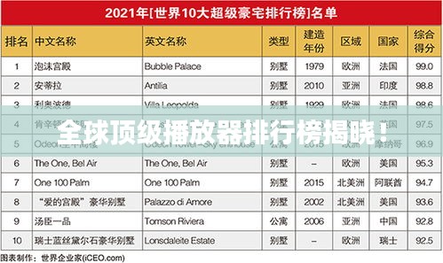 随着科技的飞速发展,播放器作为我们日常生活中娱乐的重要组成部分,其种类与功能日益丰富,本文将为您介绍世界上最大播放器的排名,带您了解这些顶级播放器的风采。