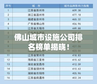 随着城市化进程的加速,城市设施的建设与管理日益受到各级政府的重视,在佛山这座充满活力和创新精神的城市中,众多城市设施公司应运而生,为城市的繁荣和发展做出了巨大的贡献,本文将为您呈现佛山城市设施公司的排名榜,带您了解这些企业的风采。