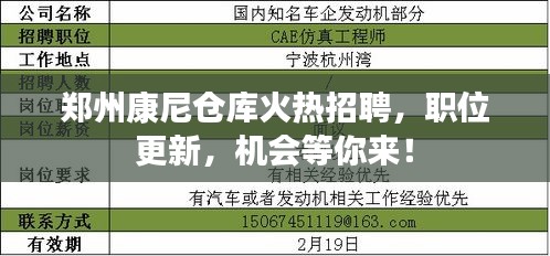 随着电子商务的飞速发展,物流行业也在不断扩大,对于人才的需求也日益增长,郑州康尼仓库作为地区内重要的物流节点,正积极寻找优秀的仓库管理、物流运作等方面的专业人才,本文将为您详细介绍郑州康尼仓库的招聘信息及相关情况。
