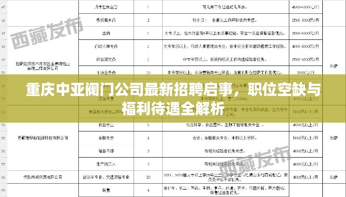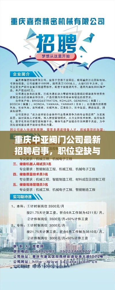 重庆中亚阀门公司是一家专业从事阀门研发、生产与销售的企业,多年来一直致力于提供高品质的阀门产品和优质的服务,随着公司业务的不断扩展,现在我们诚邀有志之士加入我们的团队,共同开创美好的未来,以下是重庆中亚阀门公司的最新招聘信息。