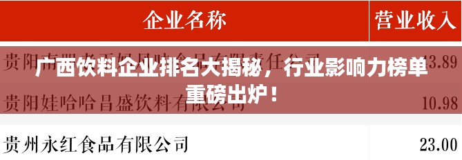 广西,这片富饶的土地,以其得天独厚的自然资源和优越的气候条件,孕育了众多优秀的饮料企业,随着饮料市场的日益繁荣,广西饮料公司逐渐崭露头角,本文将对广西饮料公司进行排名,并探讨其行业影响力。